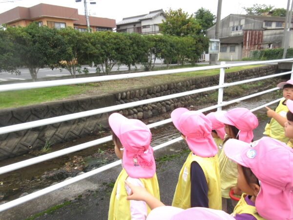 散歩中、「なんか、匂いがするね!」「どこどこ?」と匂いのもとを探していると、川沿いのところに金木犀がたくさん咲いていました!「このお花だね」と子どもたちも金木犀から漂ってくる匂いを感じていました。