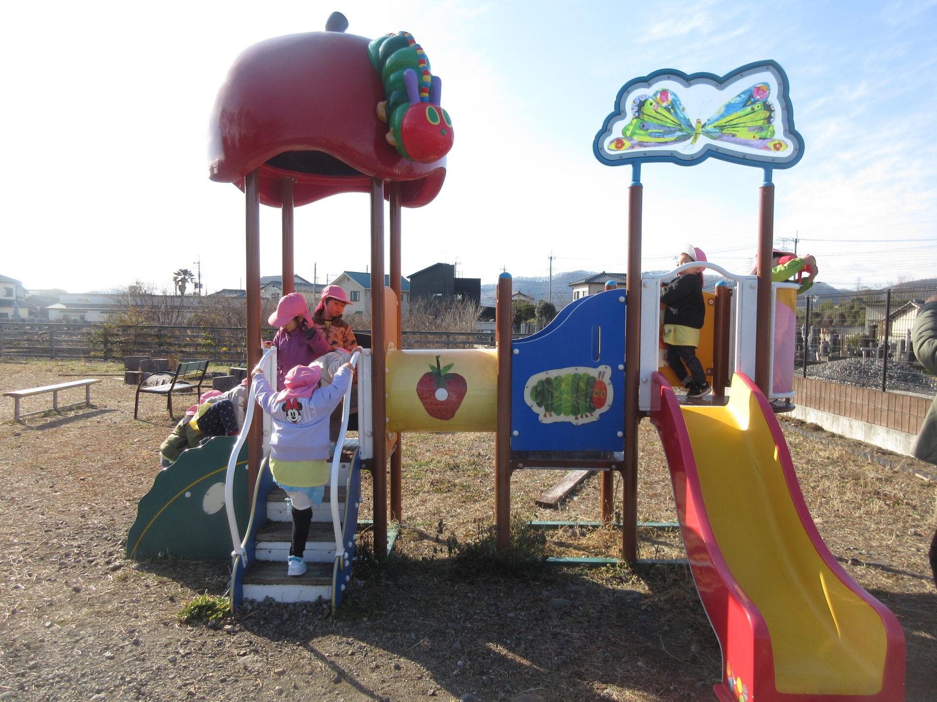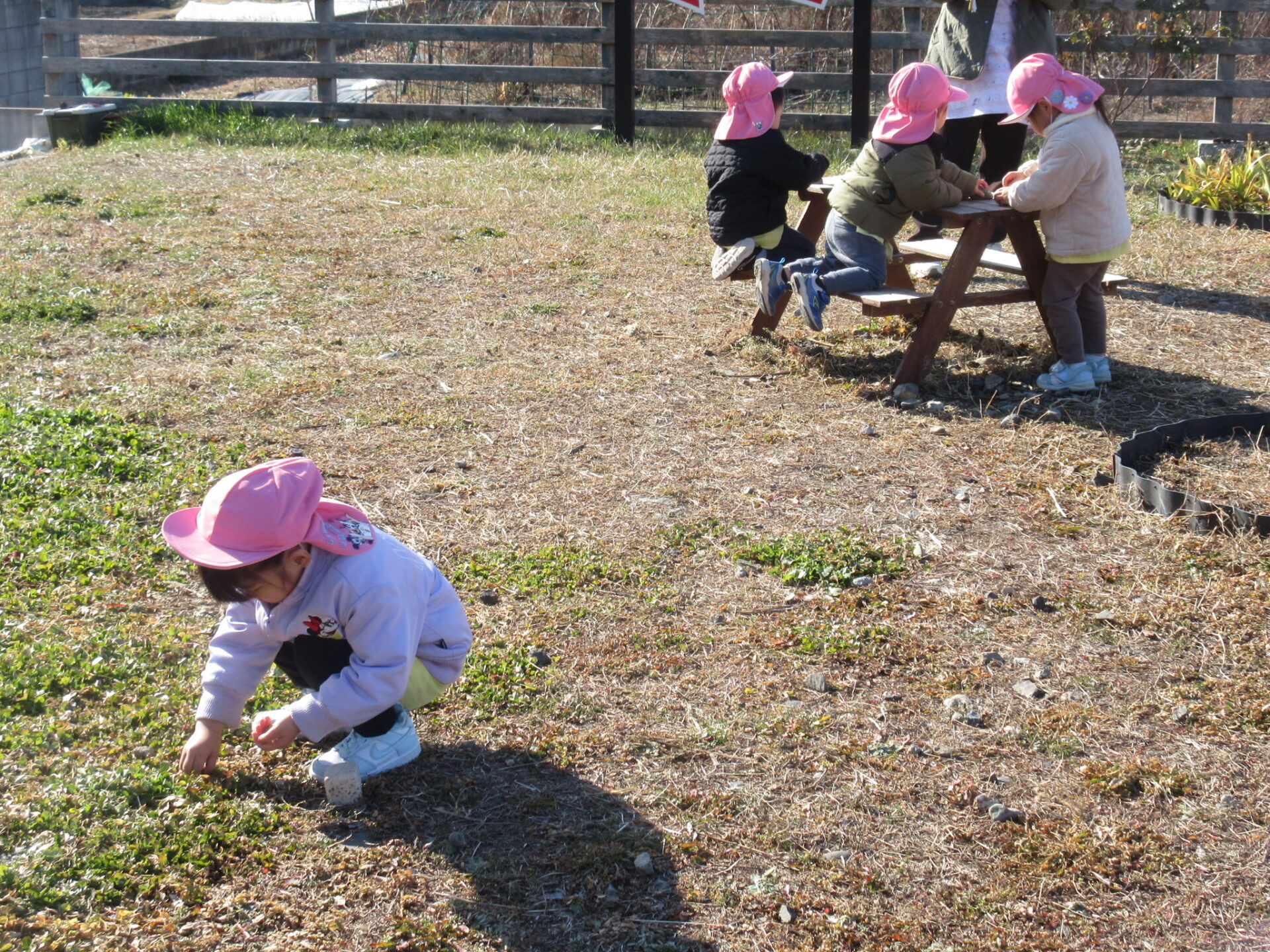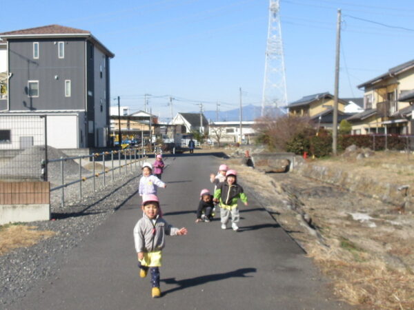 子育てガーデン広場で遊んできました。気温も穏やかで思い思い好きな遊びを見つけて、おともだちと遊ぶ様子が見られました。また、かけっこも楽しみました。走ってくるこどもたちの笑顔がとてもキラキラしていました☆