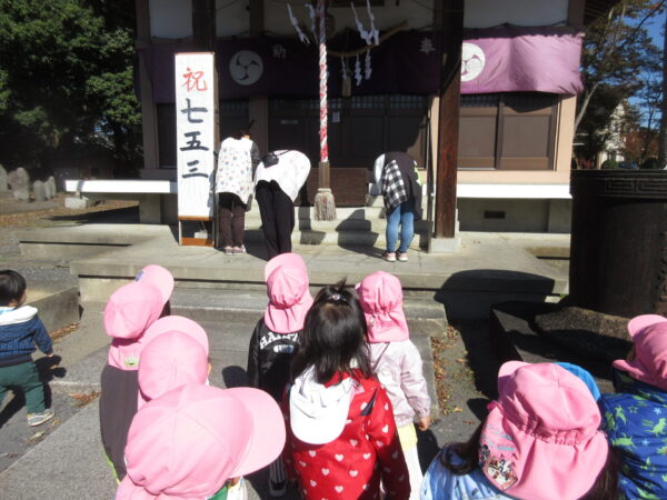 どんぐり組さんと一緒に篠生神社へ参拝に行ってきました。元気に過ぎせるようみんなでお参りできました。