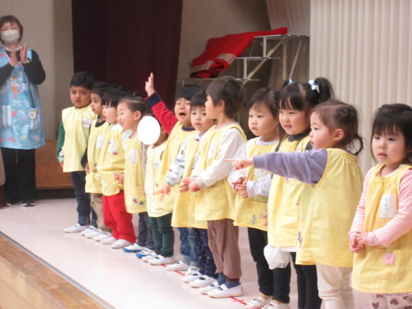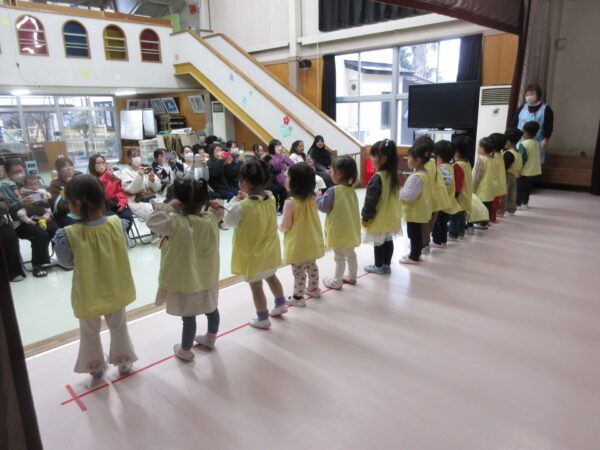 登園してから、「今日はママたちが来るんだよね!」「がんばるよ!」「上手におどるんだよ!」と、子どもたちから力強い言葉が聞かれた通り、本番では元気に歌ったり、踊ったりと一人一人が頑張ってくれて、とても上手に発表が出来ました♪ みんなの成長が感じられた保育参観になりました。