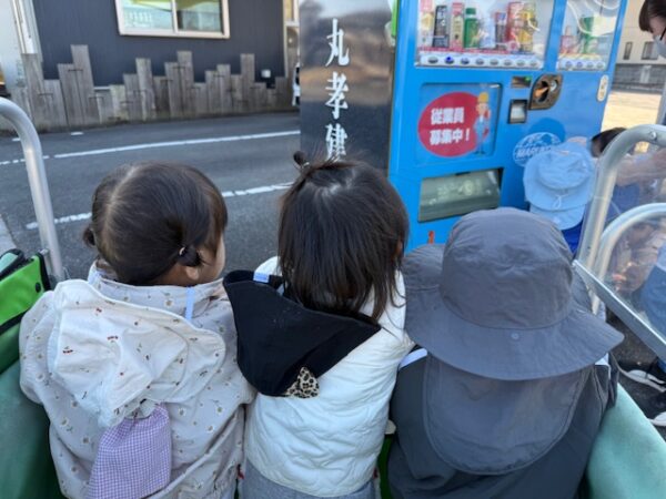 園の周りを散歩してきました。少し風が吹いていましたが、時々吹いてくる風を受け、冬の季節を感じながら散歩をすることができました。風で葉っぱが揺れてくることを感じたり、とちゅうで自動販売機を見つけて指をさすなどしていました。