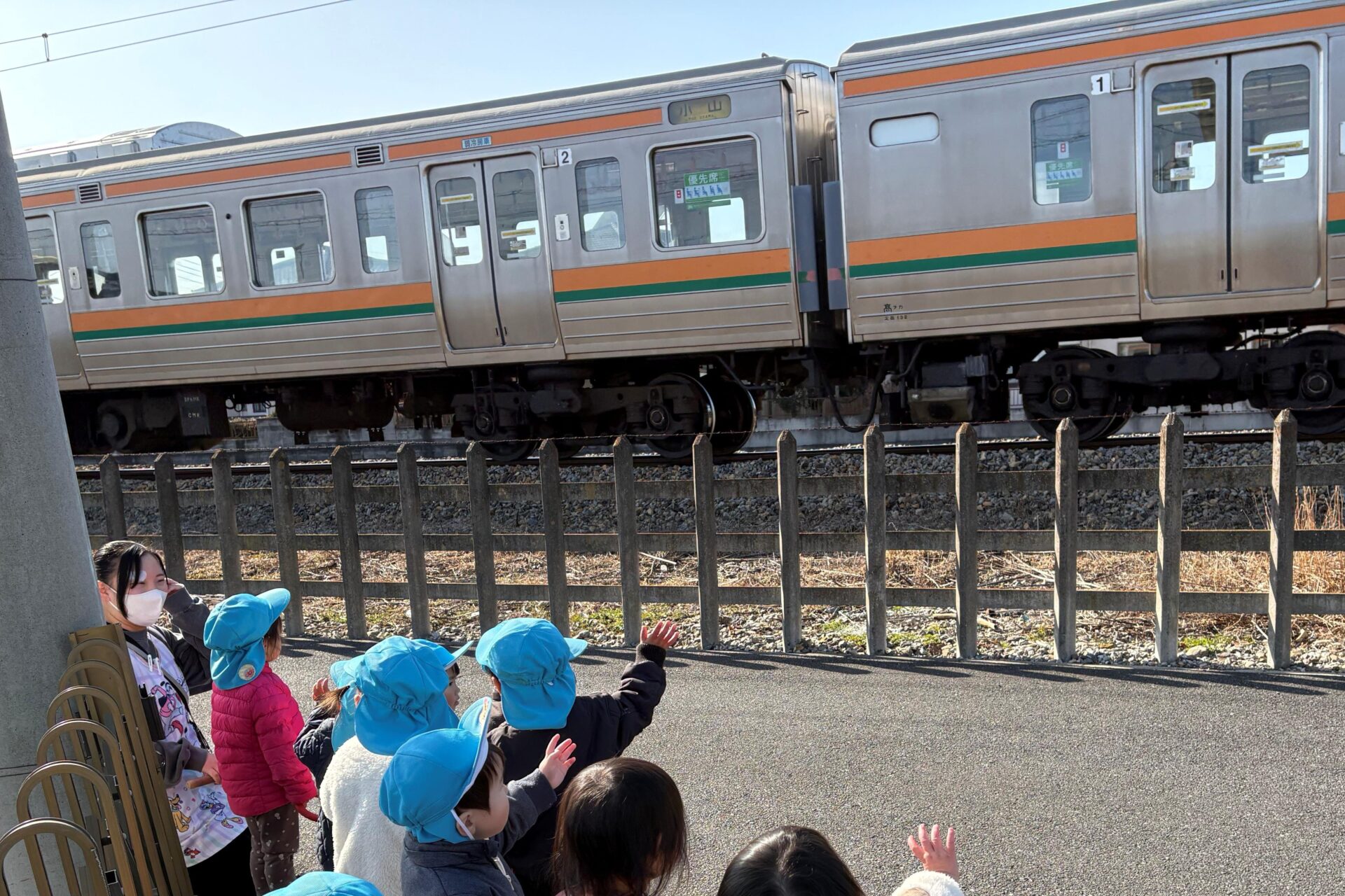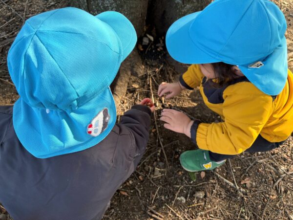 篠生神社の方までお散歩へ行きました。向かっている途中、電車を見ることができ「ばいばい」と手を振って大喜びでした。篠生神社では、まだ残っていたどんぐりを見つけ、みんなでどんぐり集めをして楽しみました。