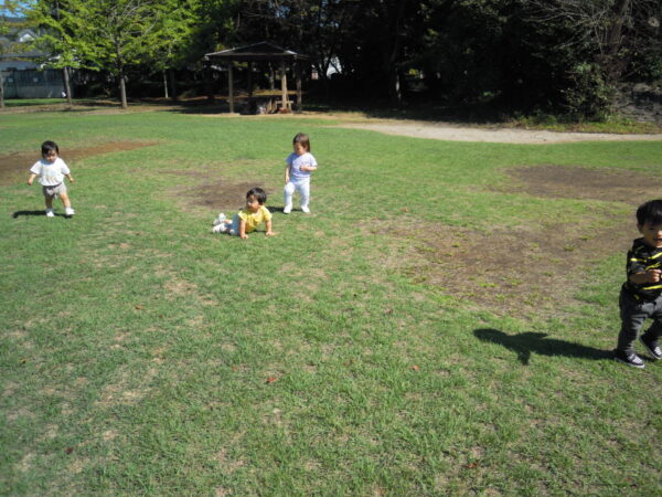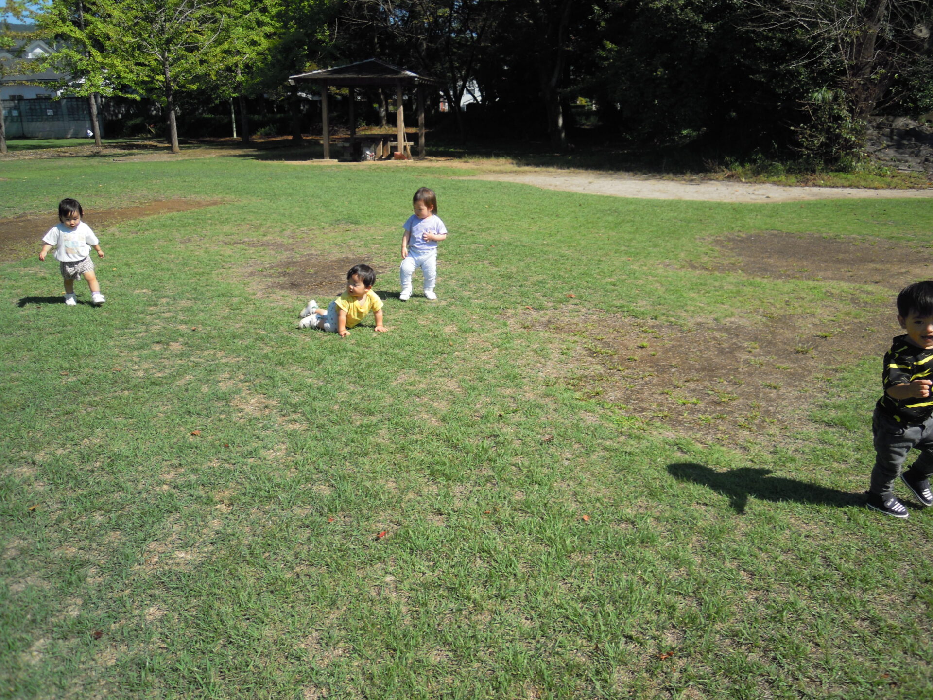 篠子神社まで散歩をしてきました。芝生のところで降り、はいはいをしたり、歩いたり、走ったりしながら存分に体を動かしてきました。広いスペースで遊ぶことをとても喜んでいて、にこにこと明るい表情がたくさん見られました♪また行ってみたいと思います。