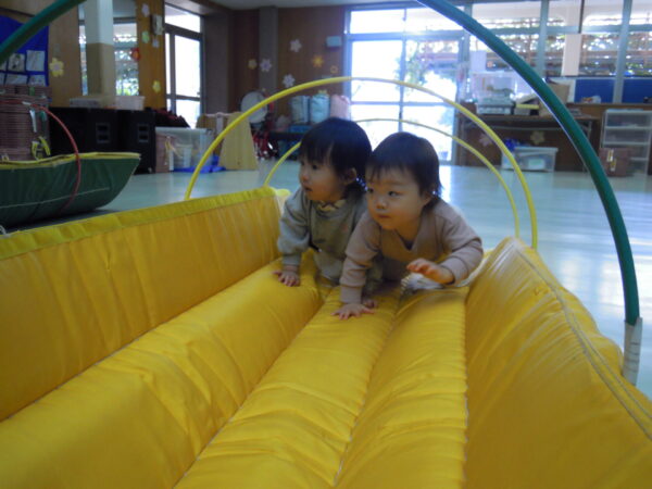 また、どんぐり1組のお友だちとも一緒に歩いたりマット遊びをして嬉しそうな様子もありました。