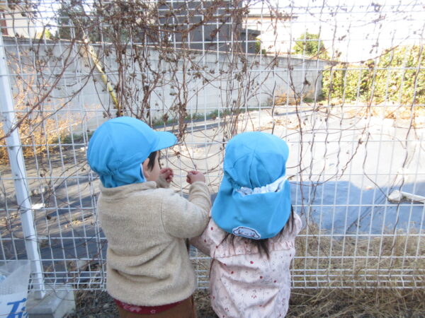 また、建物の裏にあったお花の蔓に種が付いていることに気が付いて興味津々な姿も見られましたよ!