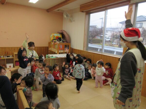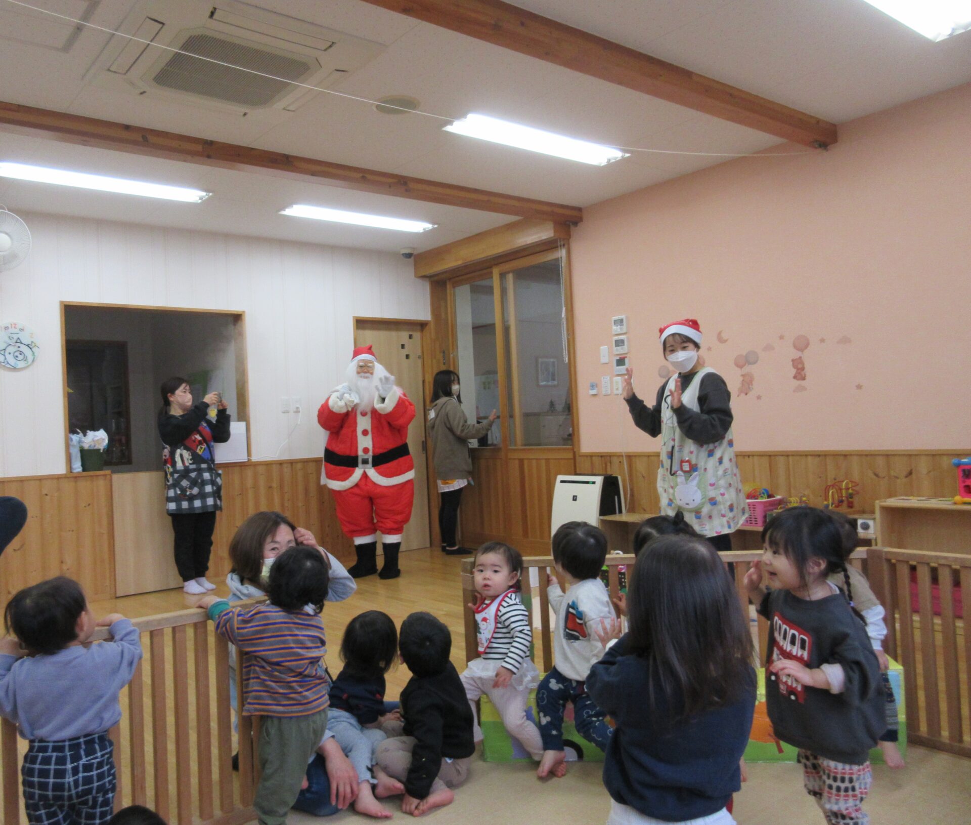 初めてサンタさんを見たお友だちもいたかと思います。少し驚いてしまった様子もありましたが、プレゼントをもらって嬉しそうな子どもたちでした。サンタさん、来年も待ってるよ☆