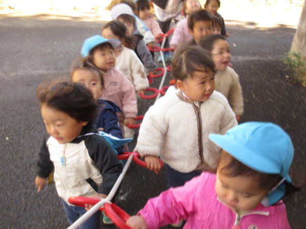 今日は園周りのお散歩へ行って来ました。風が吹いて身体に当たる感覚や葉っぱが飛んでいく様子を見ることがだいすきな子どもたちですが、風が吹く度に「きゃー!」ととても嬉しそうに全身で楽しむ姿がありました。