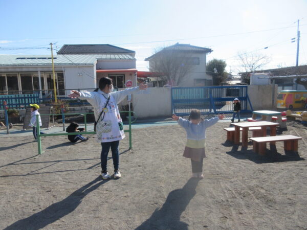 影にも興味を示し、保育者の影を線で描いてみて、誰の影が大きいか比べて楽しむ様子も面白かったです。
