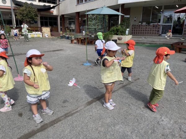 今日は、室内コーナーでストローを使った「とんぼ」を作りました。作ったとんぼは、お部屋だけでなく、園庭で飛ばすことも楽しんでいました★園庭には、いろいろな色のとんぼが飛んでいましたよ!