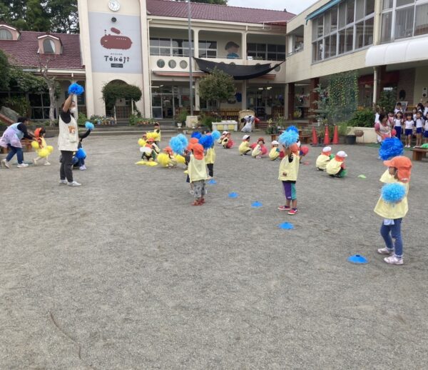 スポーツフェスティバルごっこをしました。 開会式、体操、遊戯、かけっこともりだくさんでしたが、ふじ組・もも組さんが応援してくれてとても嬉しかったようです。かけっこもゴールを目指して最後まで走り切りました。 当日も元気いっぱいの姿をお見せ出来たらと思います。
