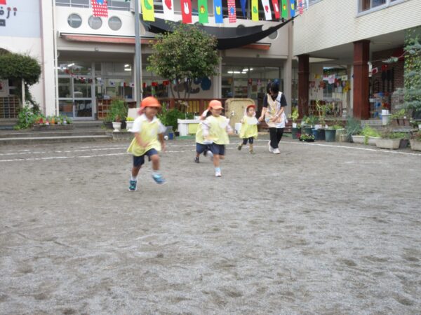 園庭で、スポーツフェスティバルで踊る体操、遊戯、かけっこを行いました。スポーツフェスティバルがもうすぐあるということが分かりみんなワクワクした気持ちで頑張っています。