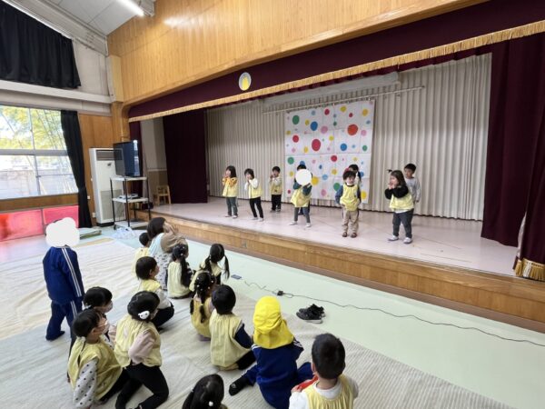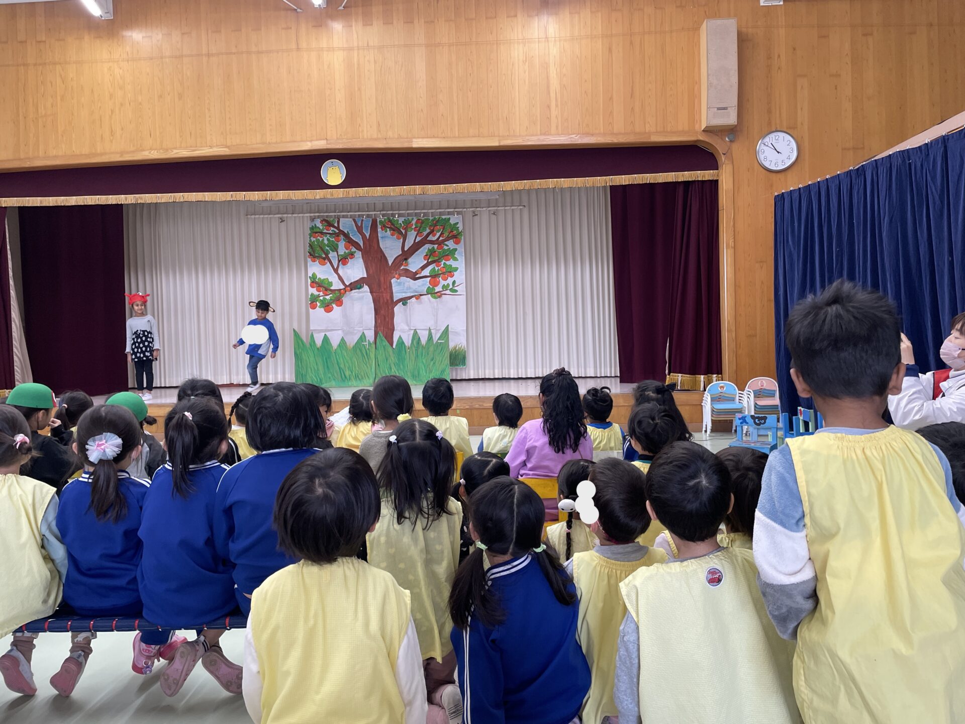 いよいよ明日が生活発表会ですね♪ 今週は、ホールで遊戯を行うだけでなく、他学年の劇やオペレッタを見学し、園全体で盛り上がっていました。見学するだけでなく、お兄さん・お姉さんが見に来てくれたことで、緊張している子もいましたが、より達成感を感じていました。 子どもたちは明日緊張していると思いますが、温かい応援をお願いします。