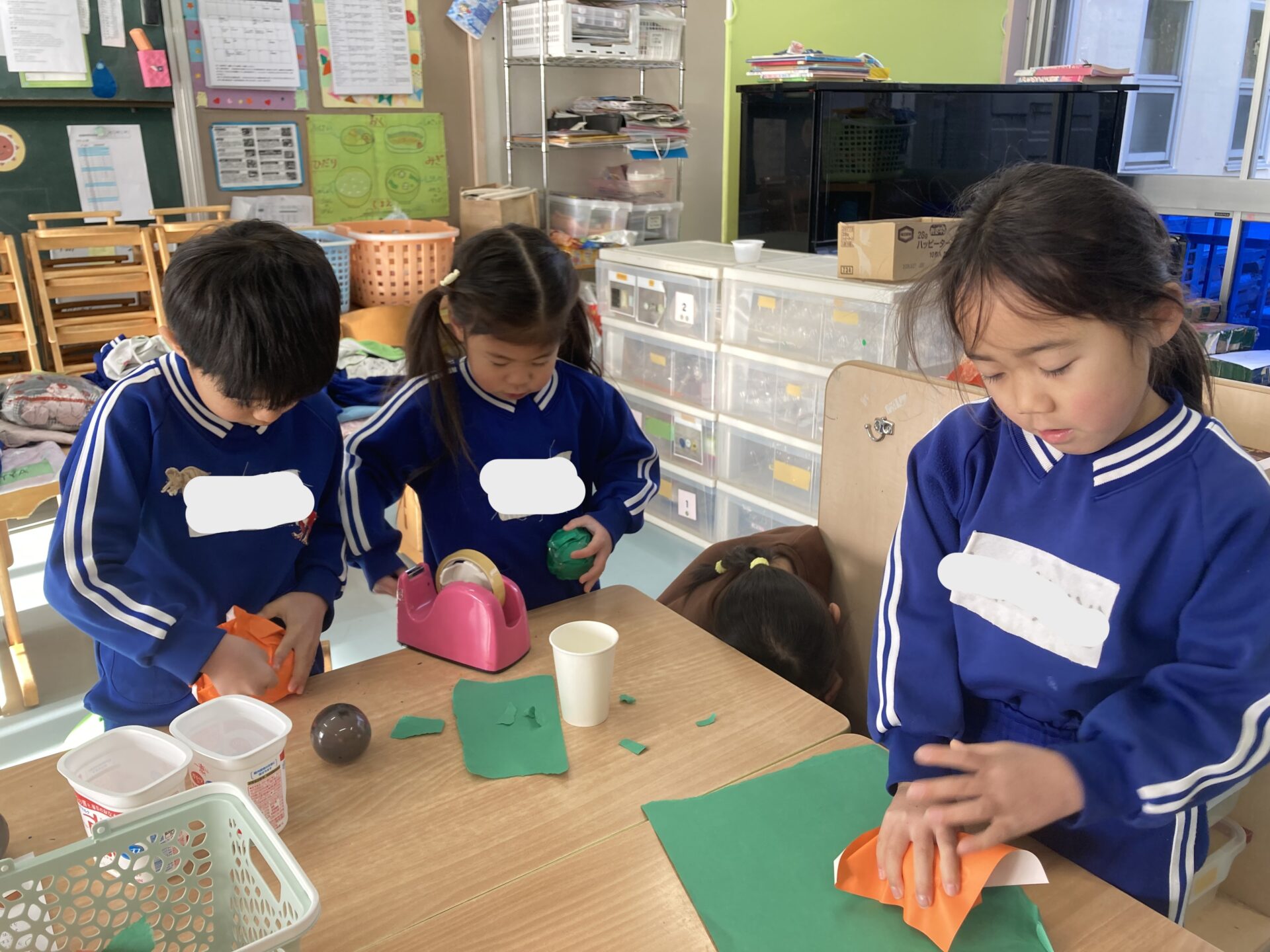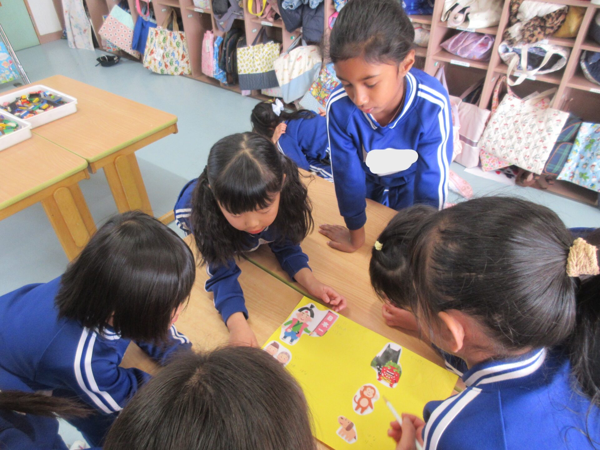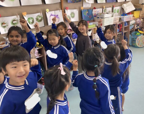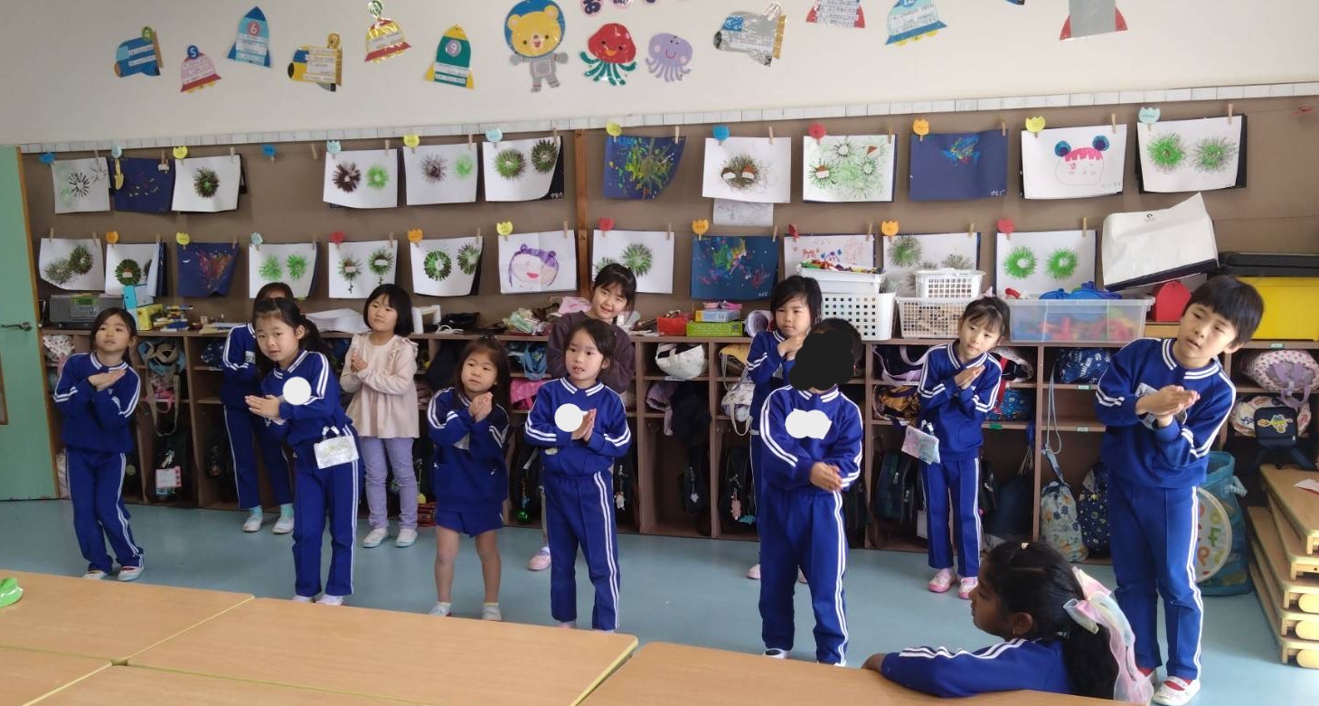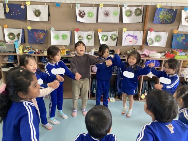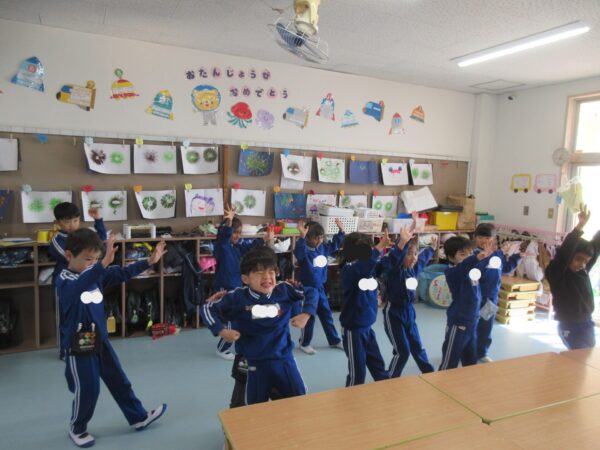 踊りでは、積極的に提案してくれる子が多く、歌詞からイメージを広げて振りを考えたりしました!もっと踊りた~いとやる気満々の子どもたちです☆