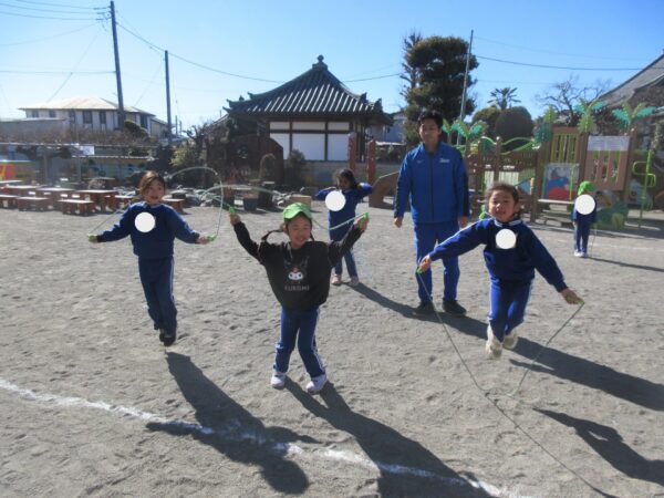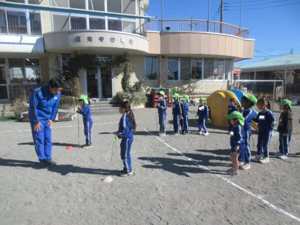 今日は、体育教室で縄跳びを行ないました。 腕を大きく回して手首も使っていこうというのが本日のねらいだったが、どの子も意識しながら頑張っていました。 1回、2回・・・と続けて跳べる回数が増えていくことで、できるようになる嬉しさや自信をつけている子どもたちでした。 難しさを感じた時も友だち同士で教え合ったり、励ましてもらうことが前向きに取り組めるパワーに変わっている様子でした♪