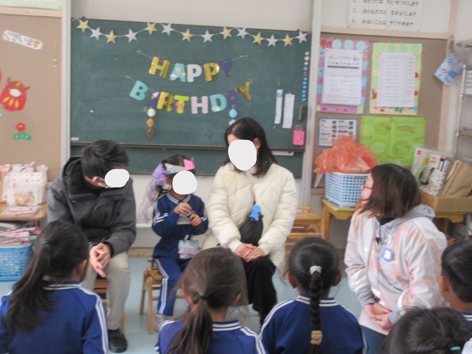 今日は1月生まれの誕生日会がありました。 少しドキドキしながらも、とても上手に自己紹介をしたり質問に答えてくれました。お家から持ってきてくれた宝物を紹介してくれる時も、友だちが見やすいように向きを考えたり、みんなに音が聞こえるようにボリュームを大きくしてくれたり、たくさん考えてくれていました♪ 他の子どもたちも自分のお家の人のように甘えてかかわる様子が見られ、たくさん触れあってもらって大喜びの子どもたちでした♡