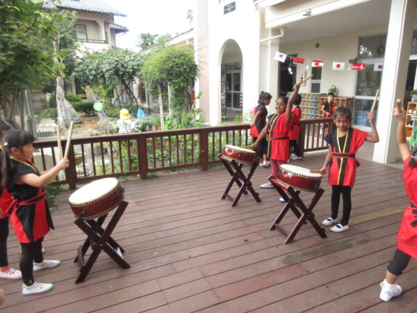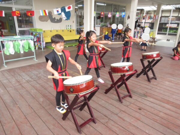 ウットデッキでは、先生になりきって和太鼓を叩いていました。どの子も自信を持って楽しみながら叩く姿が頼もしかったです♪