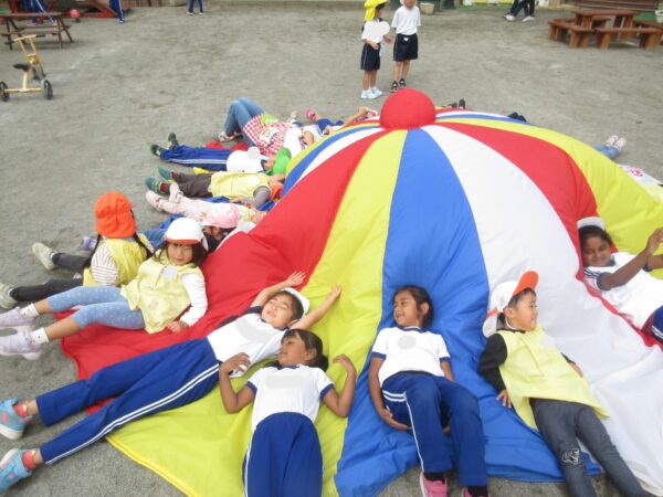 今日は、スポフェスごっこが盛り上がりました。園庭では大好きなリレーをしたり、もも組さんやふじ組さんと一緒にバルーンも楽しみました。子どもたちのお気に入りは、流星ボールをバルーンの上で弾かせるポップコーンや花火でした!キラキラ、とてもきれいでしたよ★