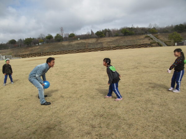 広い芝生の上では、小関さんも一緒にボール遊びをしたり、フリスビーも楽しみました。最初は、力の入れ方や投げ方を知って初めて行う子もいましたが、何度も行う中でコツを掴んでキャッチできると大喜びしていました。