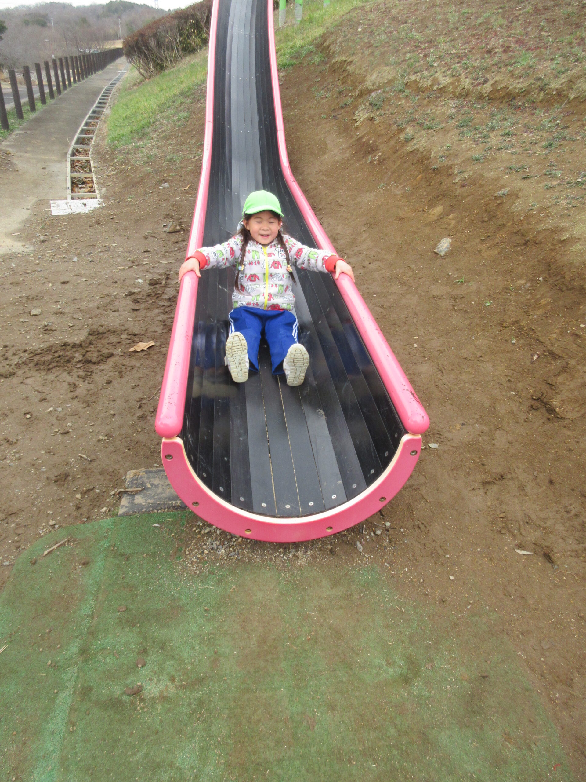 ローラー滑り台が人気で、滑っては上がっての繰り返しでしたが、何度も楽しんでいました。また、ターザンロープや三角のジャングルジムに挑戦して遊ぶ子も多かったです。
