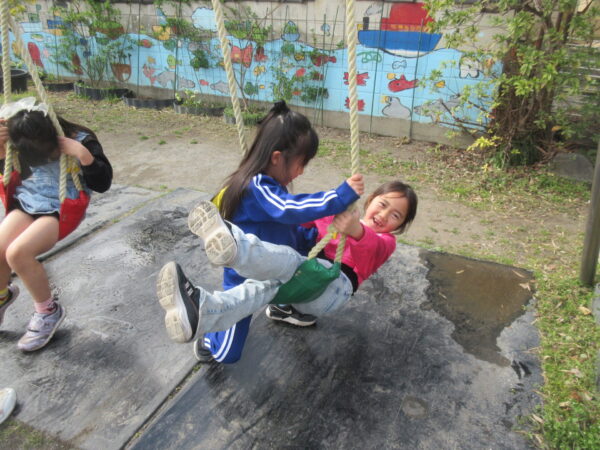 今日は、みんなで過ごせる最後の日・・・。 寂しさを口にする子もいましたが、天候もよかったので、戸外や室内で思い思いの遊びを存分に楽しみました! 砂遊びをしたり、縄跳びをしたり、石けん遊びをしたり、ブランコで靴飛ばしをしたり・・・ どの子もキラキラした表情が印象的でした♪ 明日は卒園式です。 素敵な式になりますように・・・
