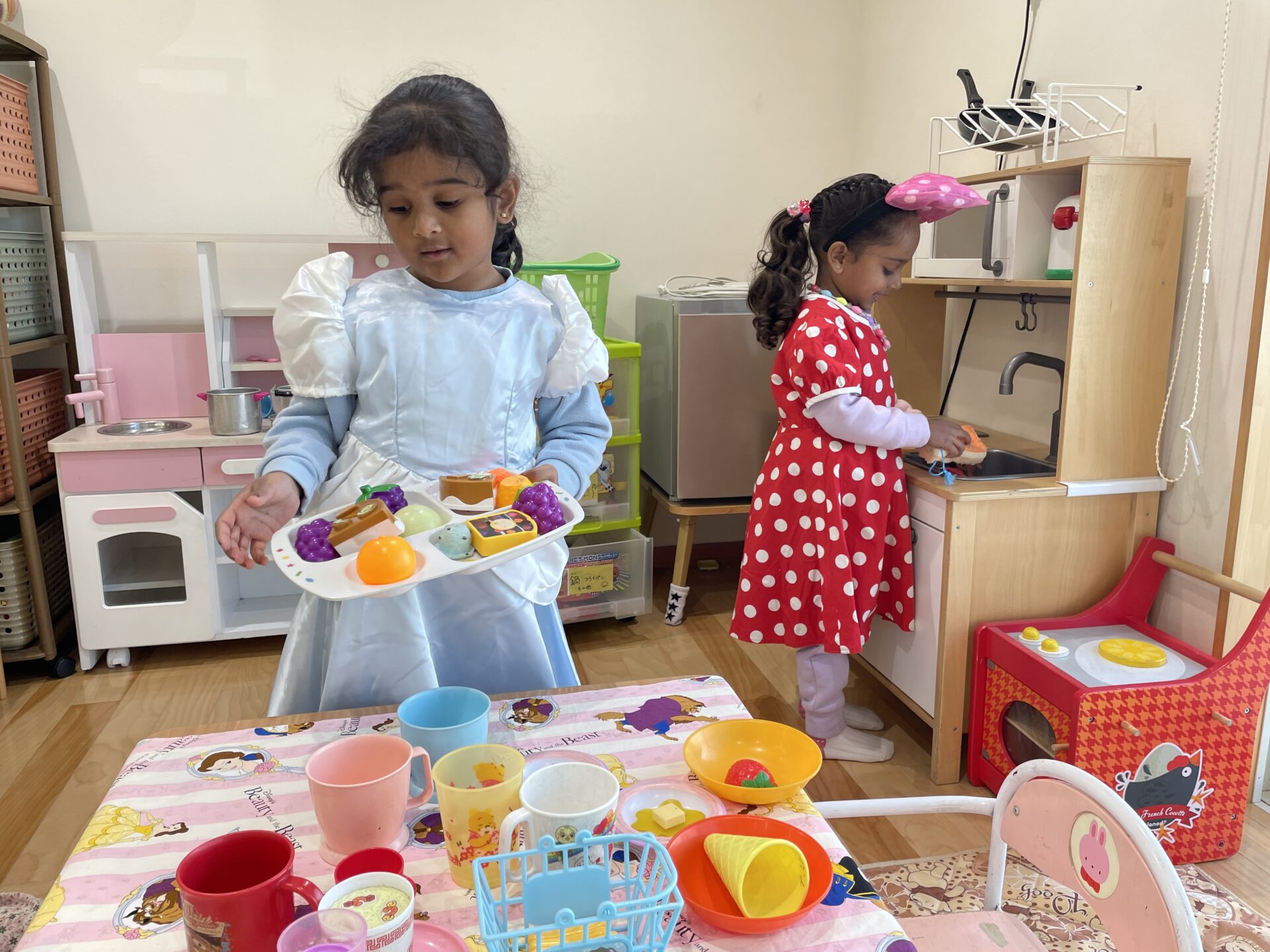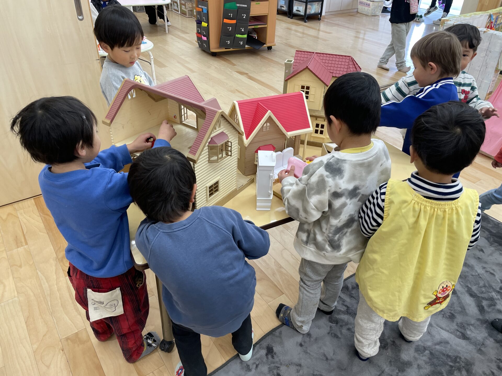 今週のままごとコーナーは、シルバニアファミリーと病院ごっこが盛り上がっていました。