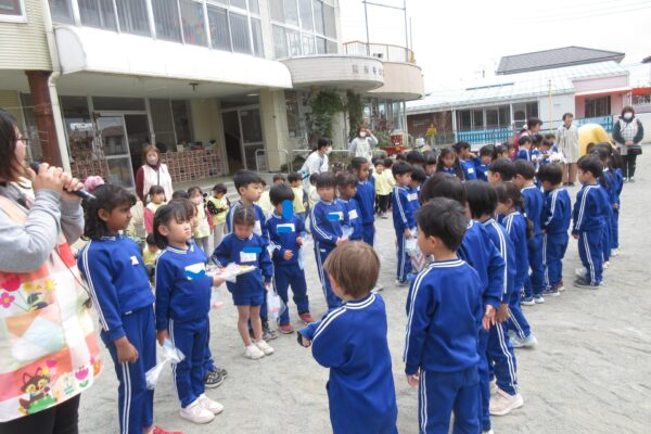 今日は、ふじ組さんとのお別れ会でした。ふじ組さん、ひよこさんとグループになり、園内ウォークラリーをしました。各箇所にじゃんけんをしたり、クイズなどをしながら一緒にミッションクリアです★ 最後は、ふじ組さんに作った卒園式のコサージュをプレゼントしました。ふじ組さんも幼稚園に素敵なプレゼントを作ってくれました。 ふじ組さんのみんなありがとう!! 優しくてたよりになるふじ組さんに憧れの気持ちでいっぱいのもも組さんでした。