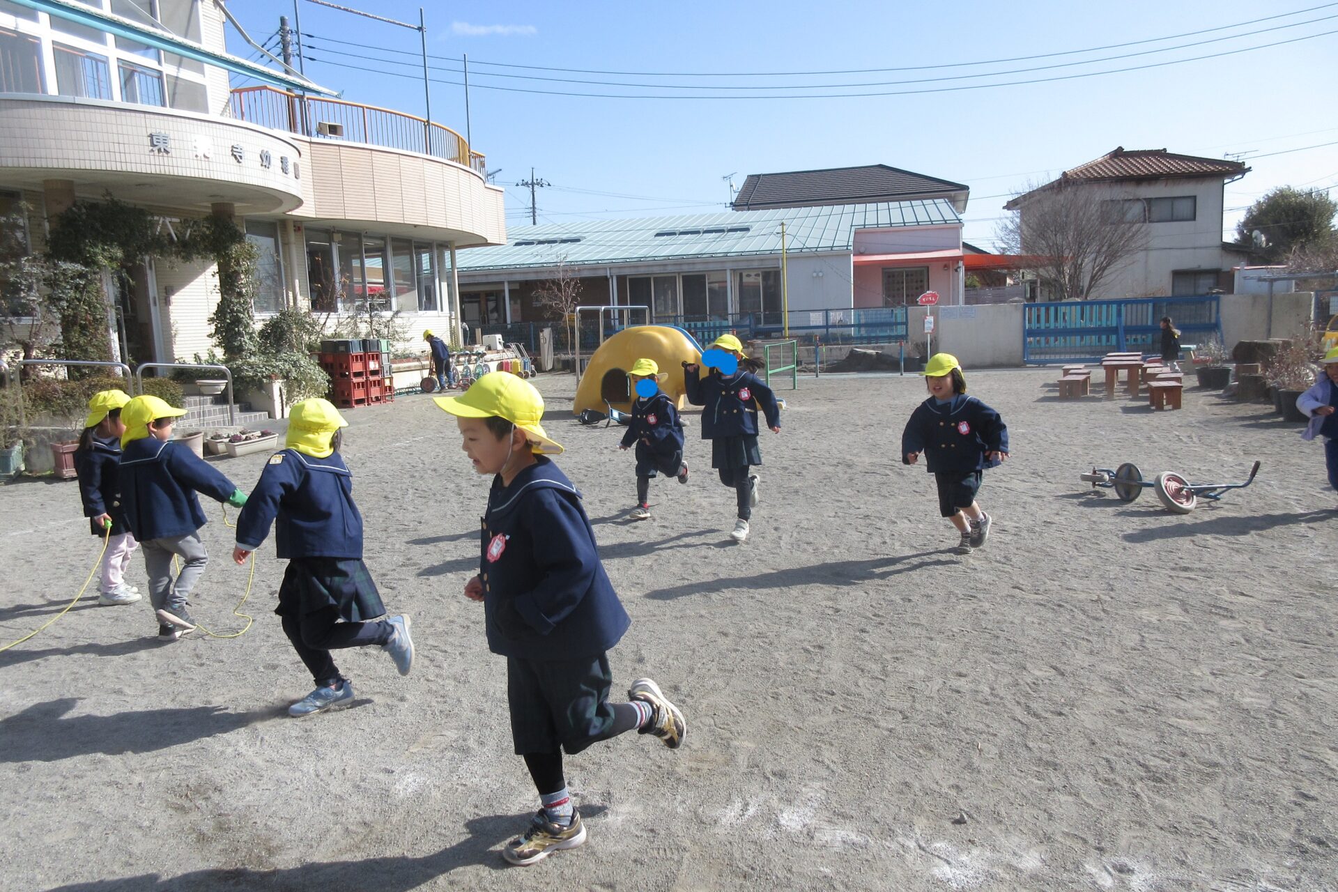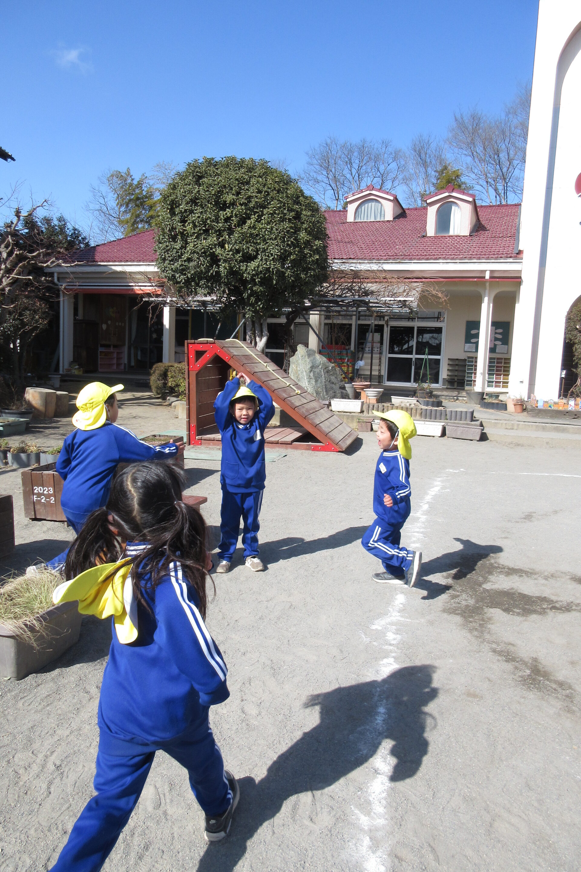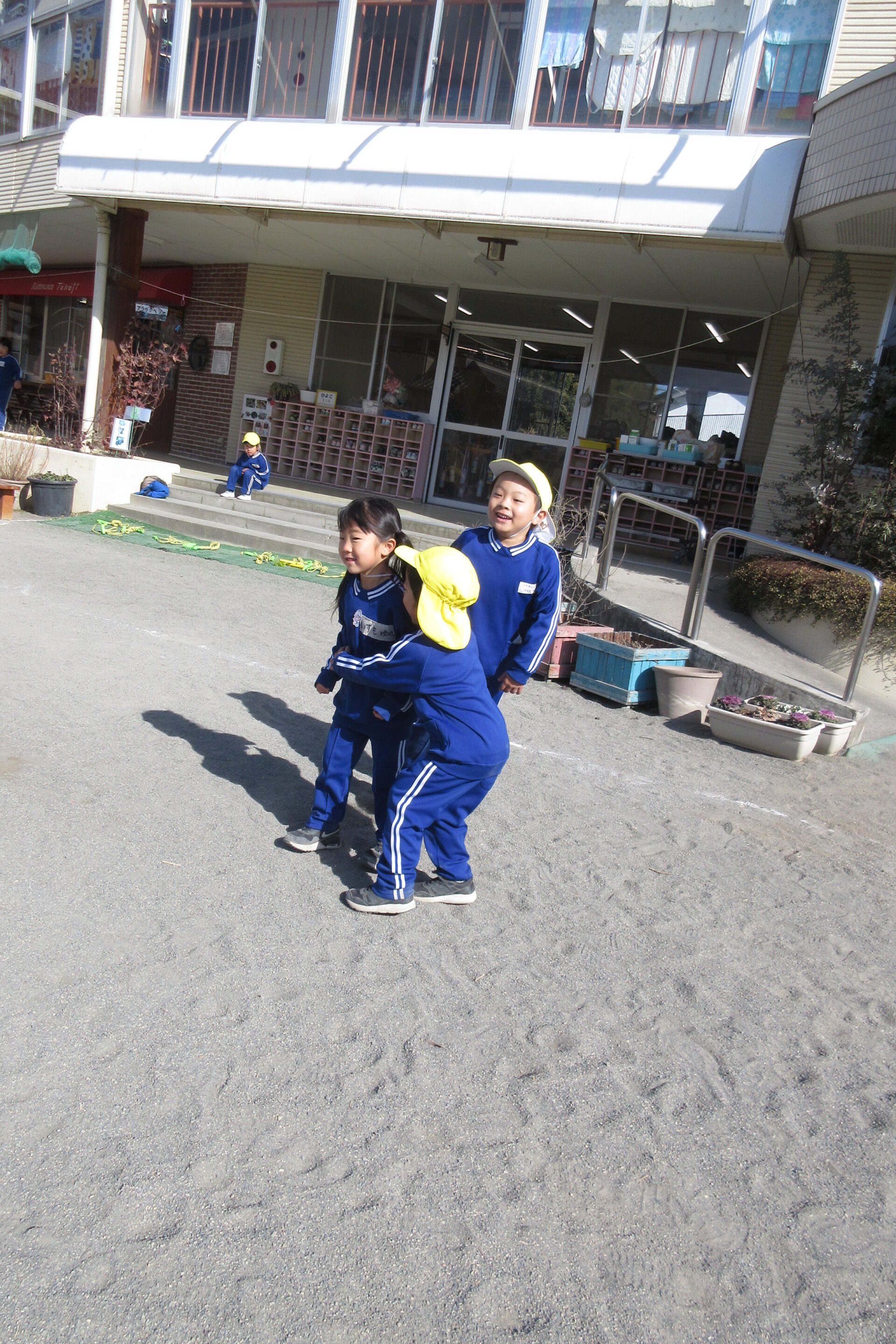 体育教室以外でももも組さんは、寒さに負けず鬼ごっこを楽しんでいます。