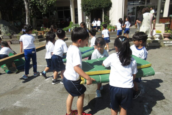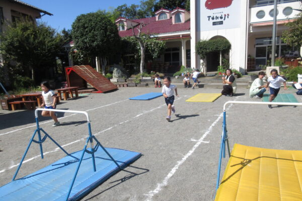 マットで前回りも全員出来るようになり、鉄棒では、前回りにチャレンジしていた子もたくさんいました。お部屋の方でも鉄棒が出来るように用意して、みんなが自信をもって前回りや出来る事に挑戦していけるようにしたいと思います。