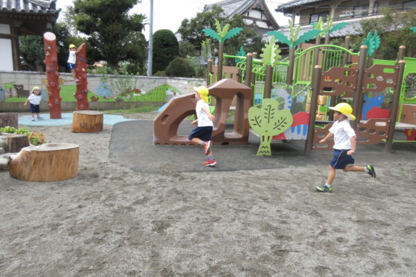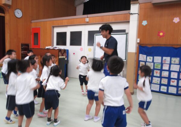 体育教室でパラバルーンが終わった後、「猛獣狩りにいこう!」のゲームをして大盛り上がり♬ 箱田先生がとってもおもしろくやってくれたので、子ども達も笑顔満開でゲームを楽しんでいました。 午前中は、園庭でも遊べたので、昨日ホールで遊んだ氷鬼ごっこをしている姿がありました。 園庭をのびのびと思いきり走り、友だちと関わりながら遊ぶ事を楽しんでいました。