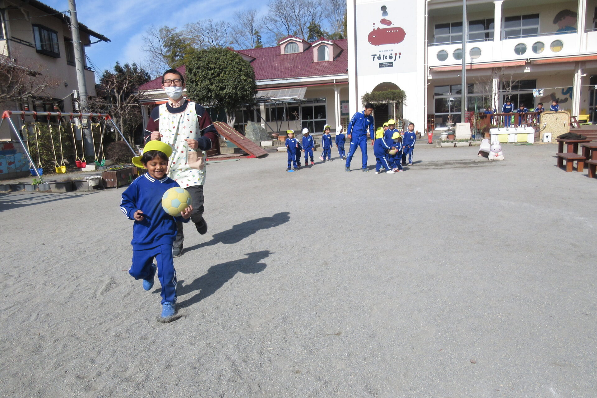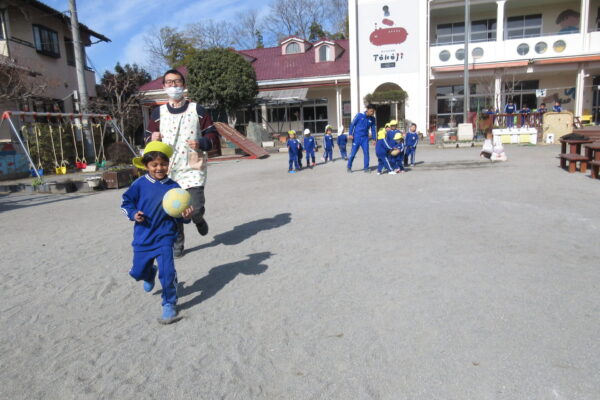 今日の体育教室は、ボール遊びと中当てドッジボールでした。ボールを抱えて走ったり、背中に乗せながら落とさないように走りながらボール遊びを楽しんだ後は、みんな大好き中当てドッジボールです! 今日は当たったら円の外に出て、終了の時間になった時に中に残っている子が優勝というルールでした。上手に逃げる方法はボールに背中を向けないで逃げる事。 ルールを守りながら楽しく遊びましたよ♪