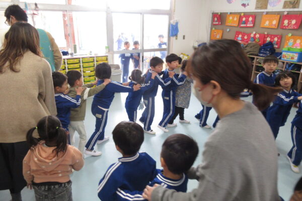 今日は、3月生まれのお誕生会でした。 2名のお誕生さんは、お友だちからの質問にも元気よく答えてくれていました♪ 今日は多数決で、椅子取りゲームとお誕生さんが選んだ貨物列車じゃんけんゲームをしましたよ★ お友だちやおうちの人と一緒に遊ぶって楽しいな♪と気持ちを味わいながら遊びました。