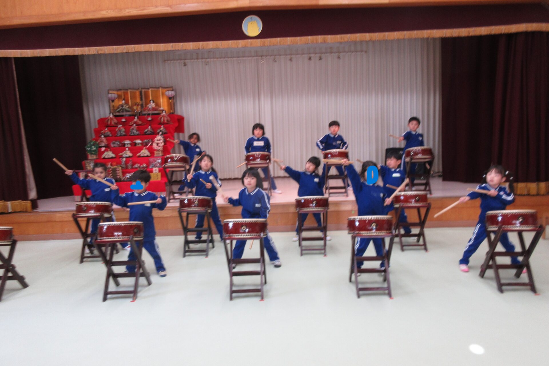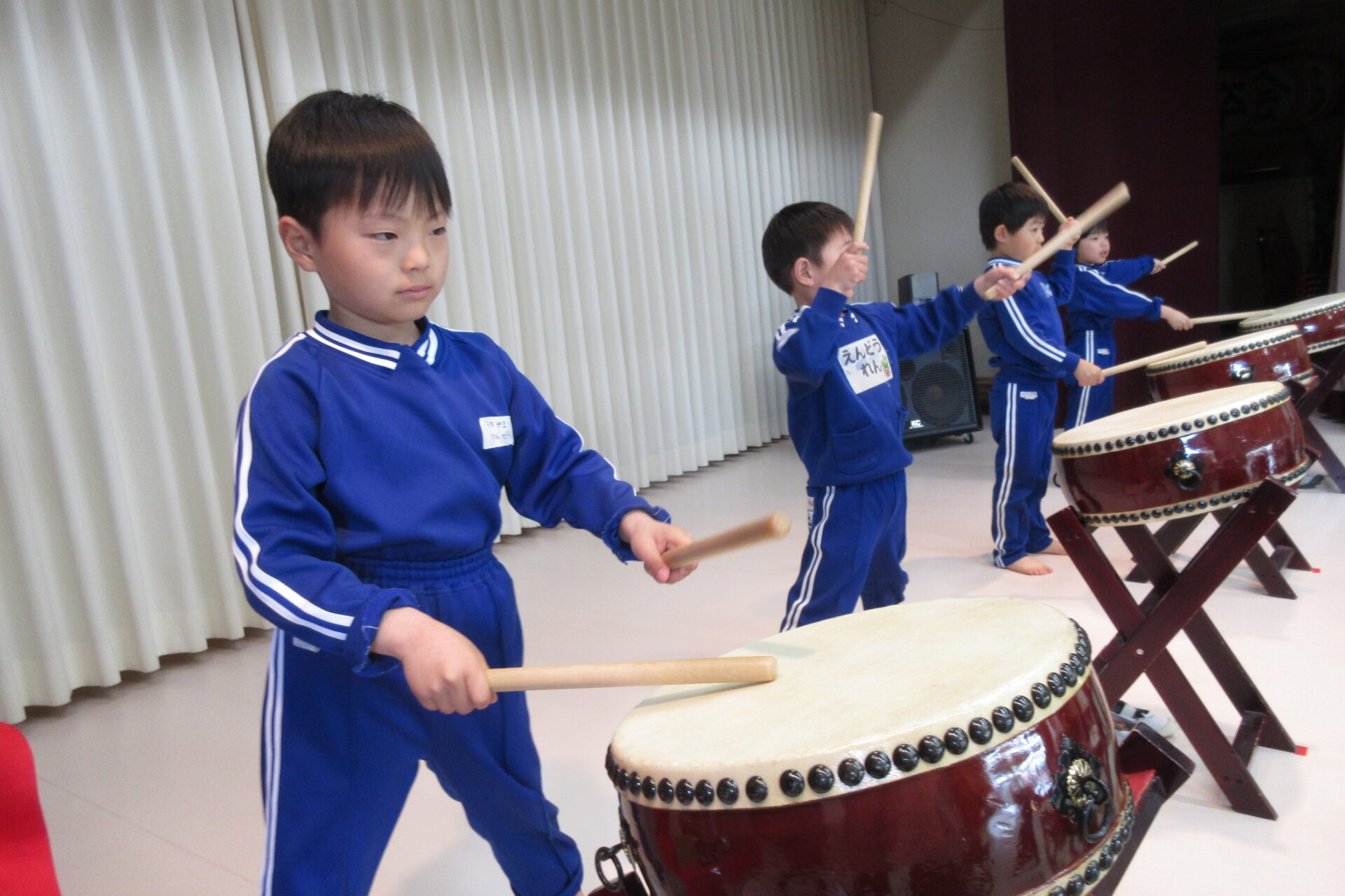 今日は、久しぶりの和太鼓でした。 「勇気100%」の曲に合わせてたたきます。手のあげ方、向きなど細かい部分を塩澤先生と確認しながら覚えていきました。何回か繰り返し行っていくうちに、「ソーレ!」の声を出るようになってきました。 保育参観をお楽しみにしていてくださいね★
