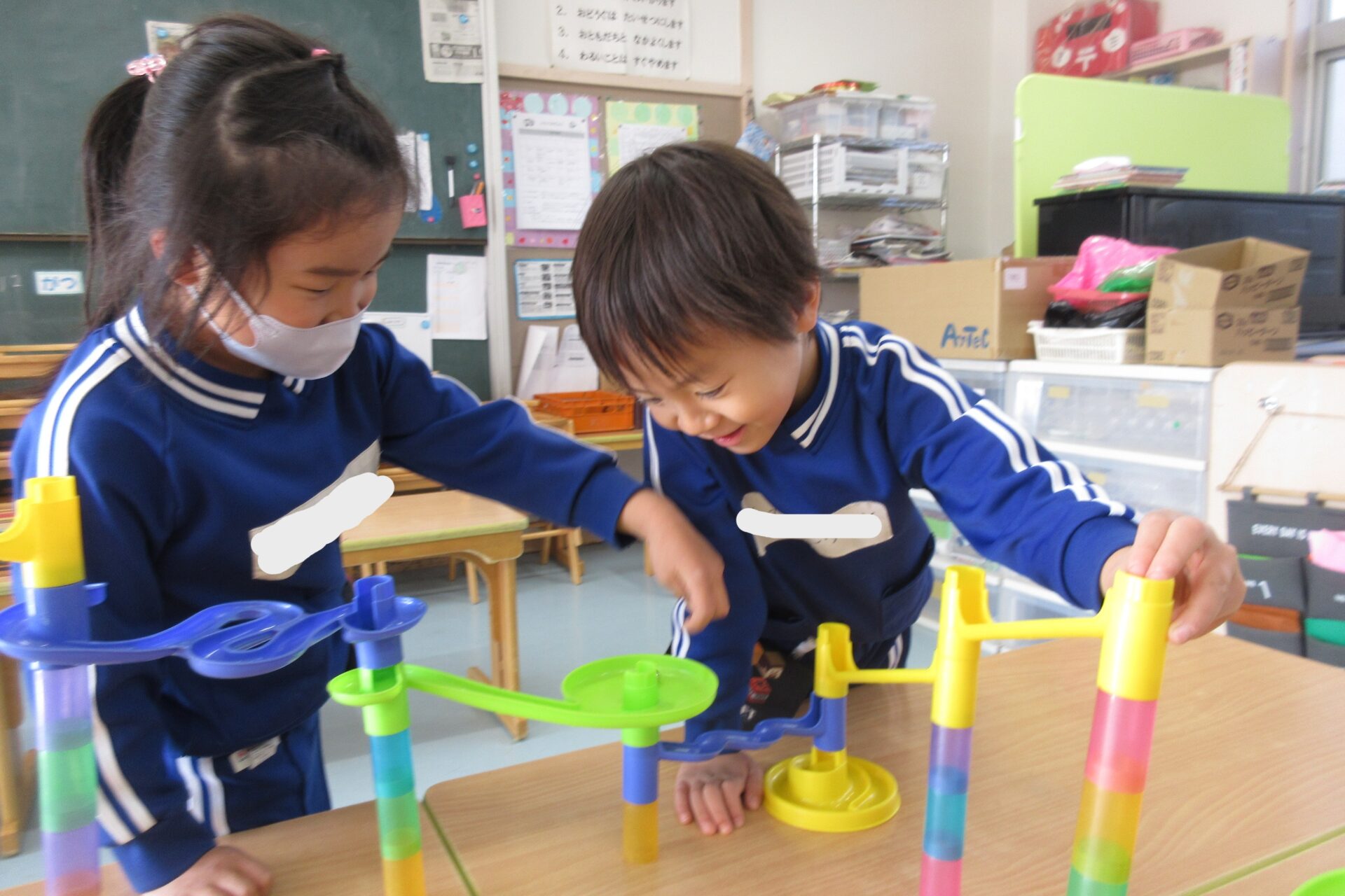 寒さから暖をとり遊ぶ子も多いので、ゆったりと遊べるブロックやスライダー遊びも引き続き用意していきたいと思っています。