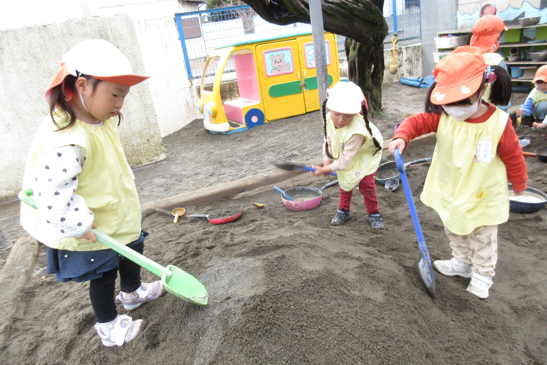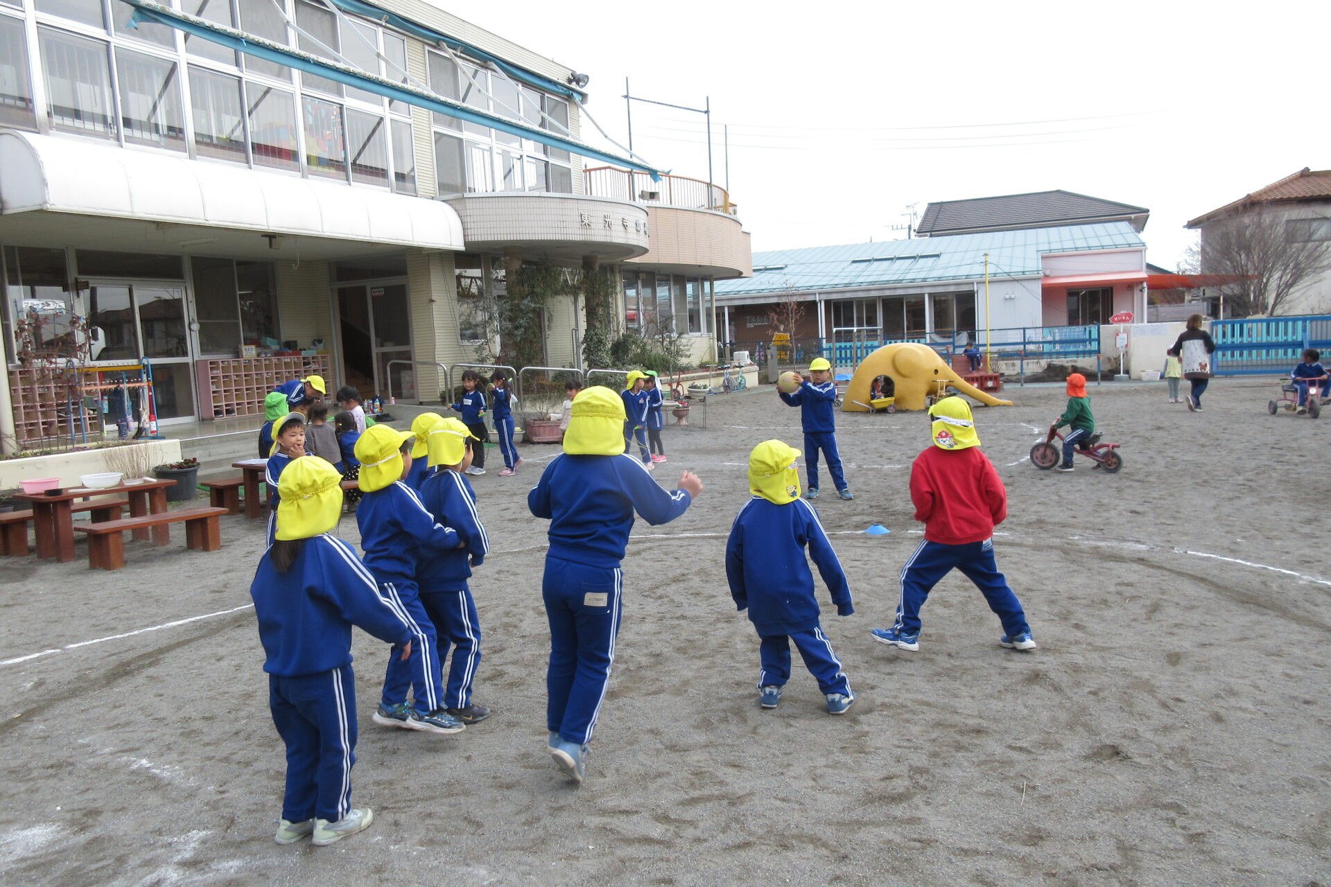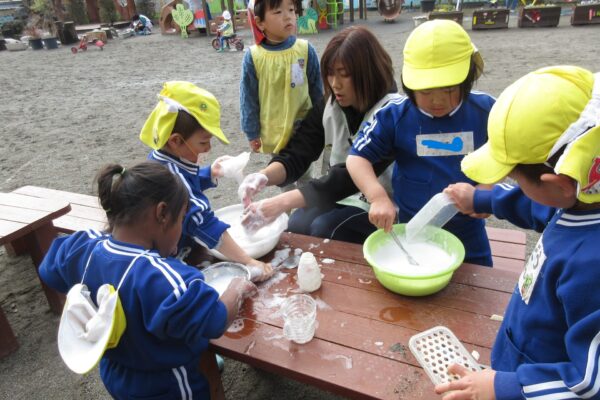 泡や、花がらで色水遊び、お砂場でお山を作り、中当てドッジボール、鬼ごっこなど様々な遊びを楽しんでいます。
