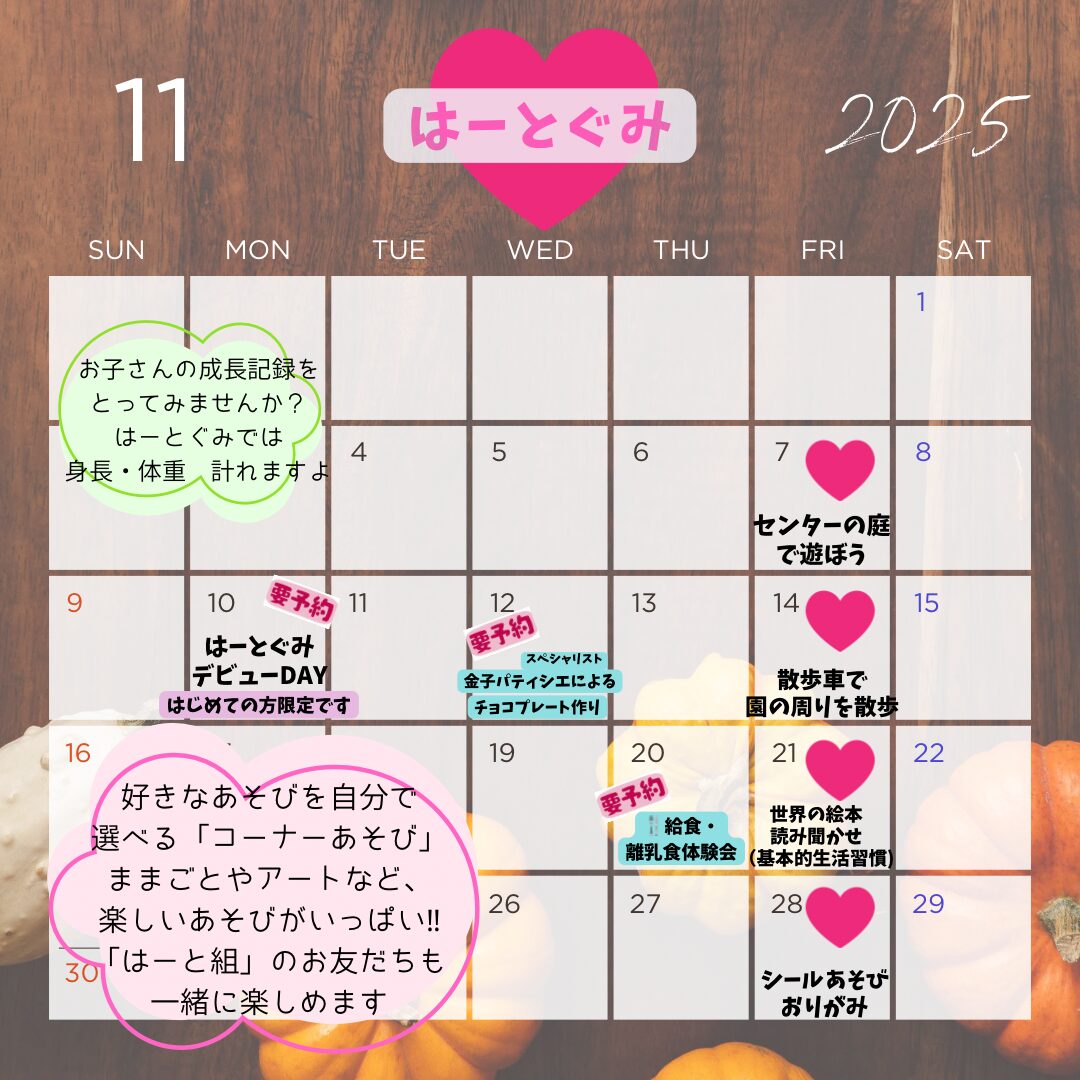 【未就園児】ぽっかぽか&はーとぐみ 11月予定表