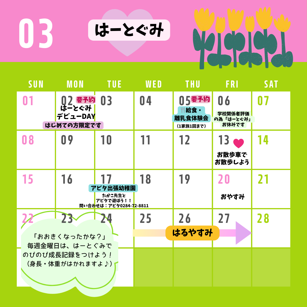 【未就園児】ぽっかぽか&はーとぐみ 3月予定表