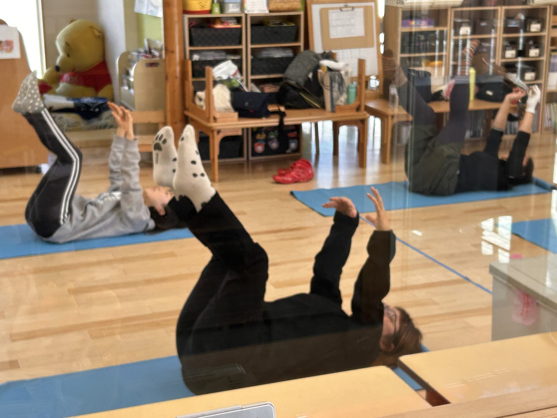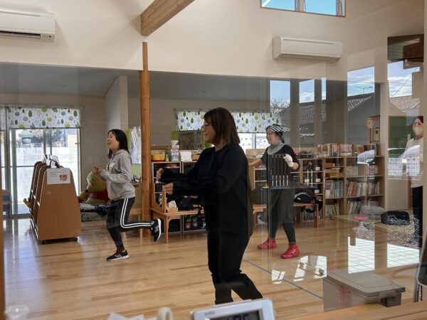 本日は、西田医院「H&M」からインストラクターさんをお招きし、待ちに待った「エアロビ体験会」を開催しました。 軽快な音楽に合わせて、インストラクターさんのリードで元気に体を動かしました。 最初は「ついていけるかしら?」と少し緊張気味だったお母さん方も、次第に大きな動きになり、会場内は熱気と笑顔でいっぱいに! 「体が軽くなった!」「良い気分転換になった」と、晴れやかな表情が印象的でした。