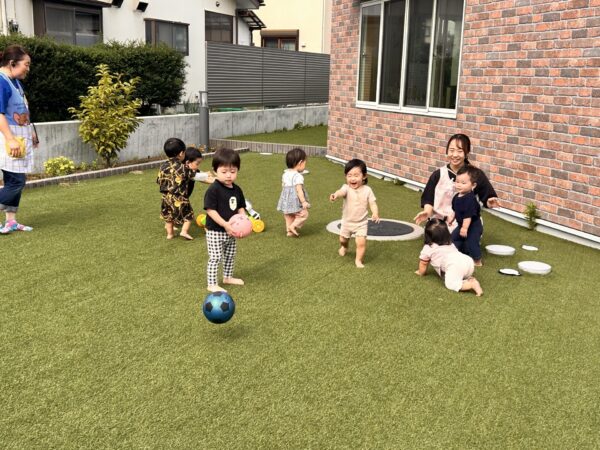 しゃぼん玉をしたり、ボール遊びしたり 電気に体を動かして遊びました。