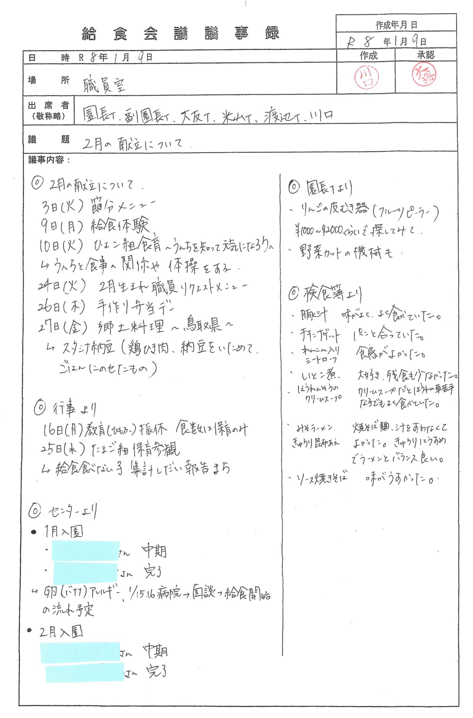 【給食会議議事録】1月の献立について