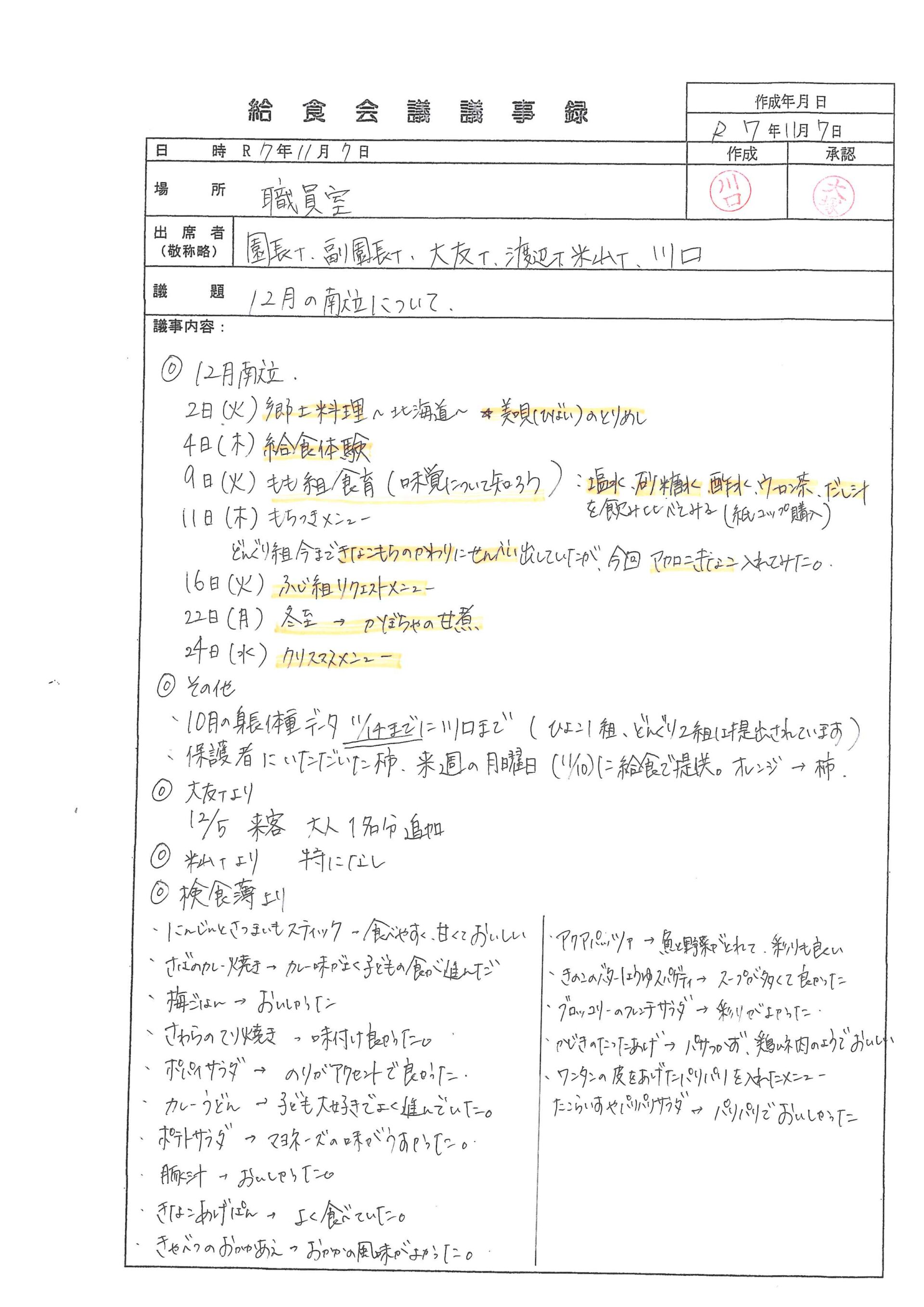 子ども達からのリクエスト、検食簿の感想から毎日楽しく美味しいメニューにしています。