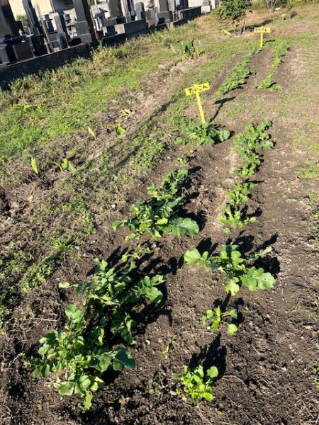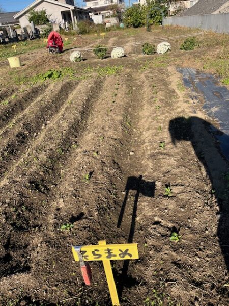 昨年、園庭で育てたそら豆をタネとして残しておいたそら豆を、先日まきました。連休明け、見に行くと、しっかりとした芽が出ていました!100パーセントの発芽率。これからの成長を見守っていきます。ほうれん草、大根も順調です。みかんは3つですが、色づきました。3つ・・・どう分けたらいいか・・・悩みますね。