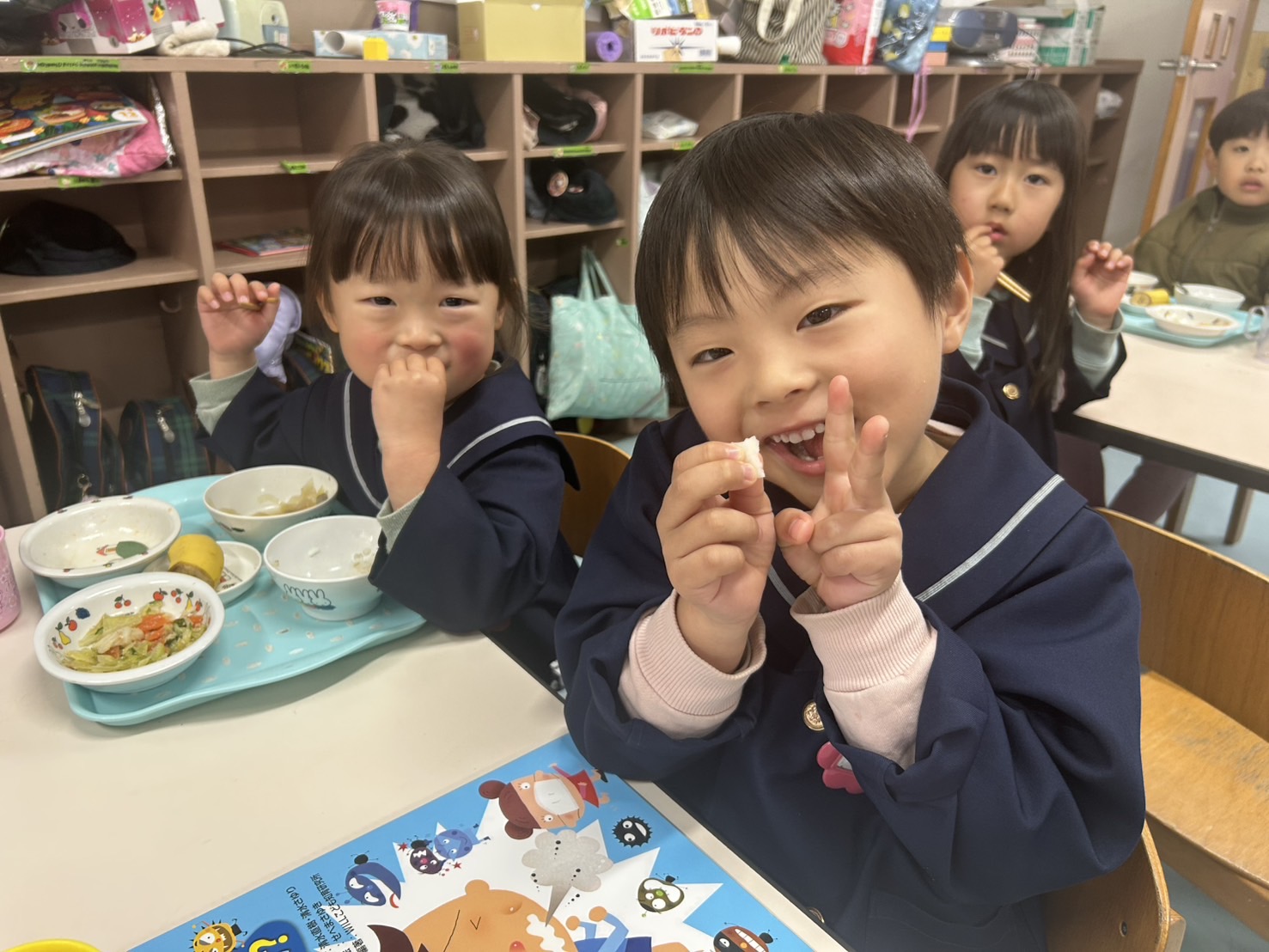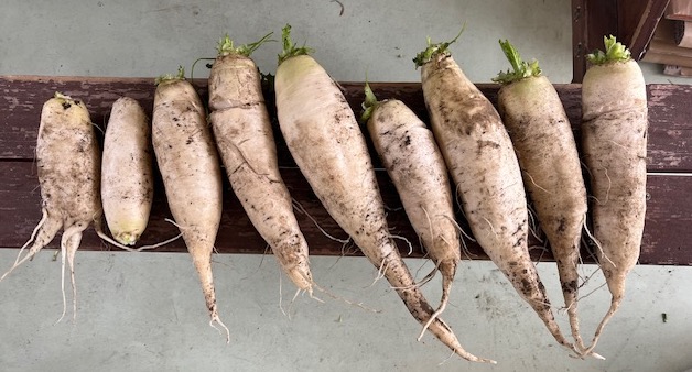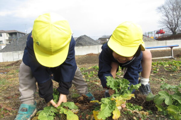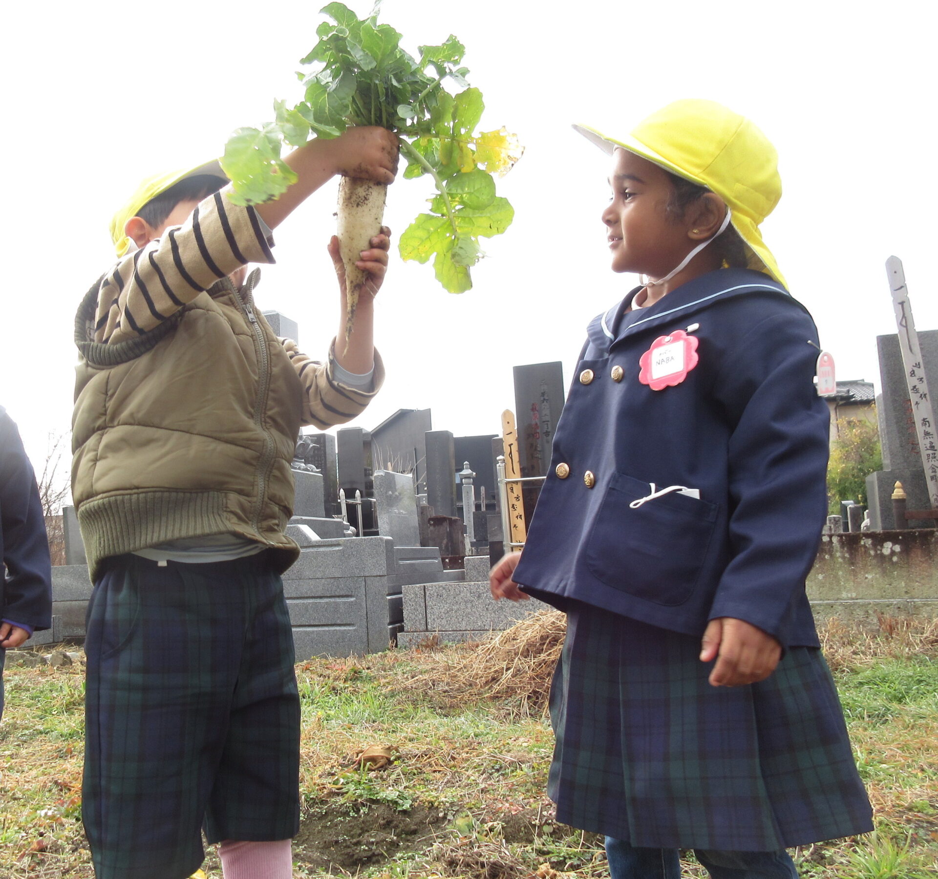 今日はもも組さんがはらっぱへ遊びに行き、大根を収穫してきてくれました。もちろんすぐに食べたいので、今日もお塩はほんの少しの塩もみ。ぱりぱり喜んで食べていました。