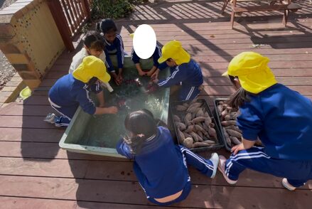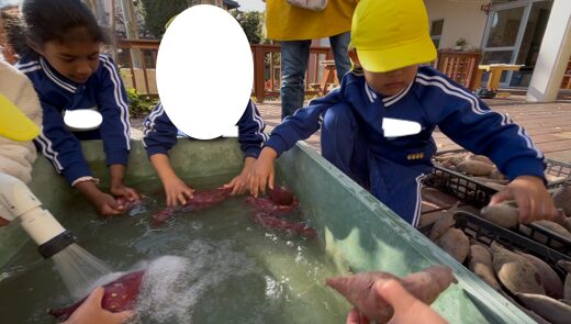 明日はいよいよ焼き芋パーティーです。看板を書いて、サツマイモを洗って、明日の準備です。さつまいもは、もちろん、はらっぱファームでみんなが収穫した、オーガニックのさつまいもです。
