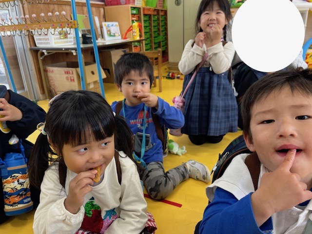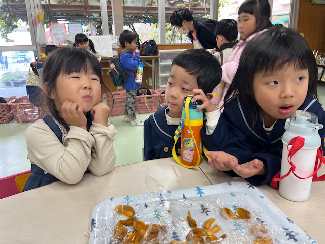 昨日に引き続き、食べごろになっている柿を食べました。小さい子はあまり進まないお友だちもいましたが、年中組、年長組は待ってました!とばかりに大喜びでした。秋の味覚を堪能しています。