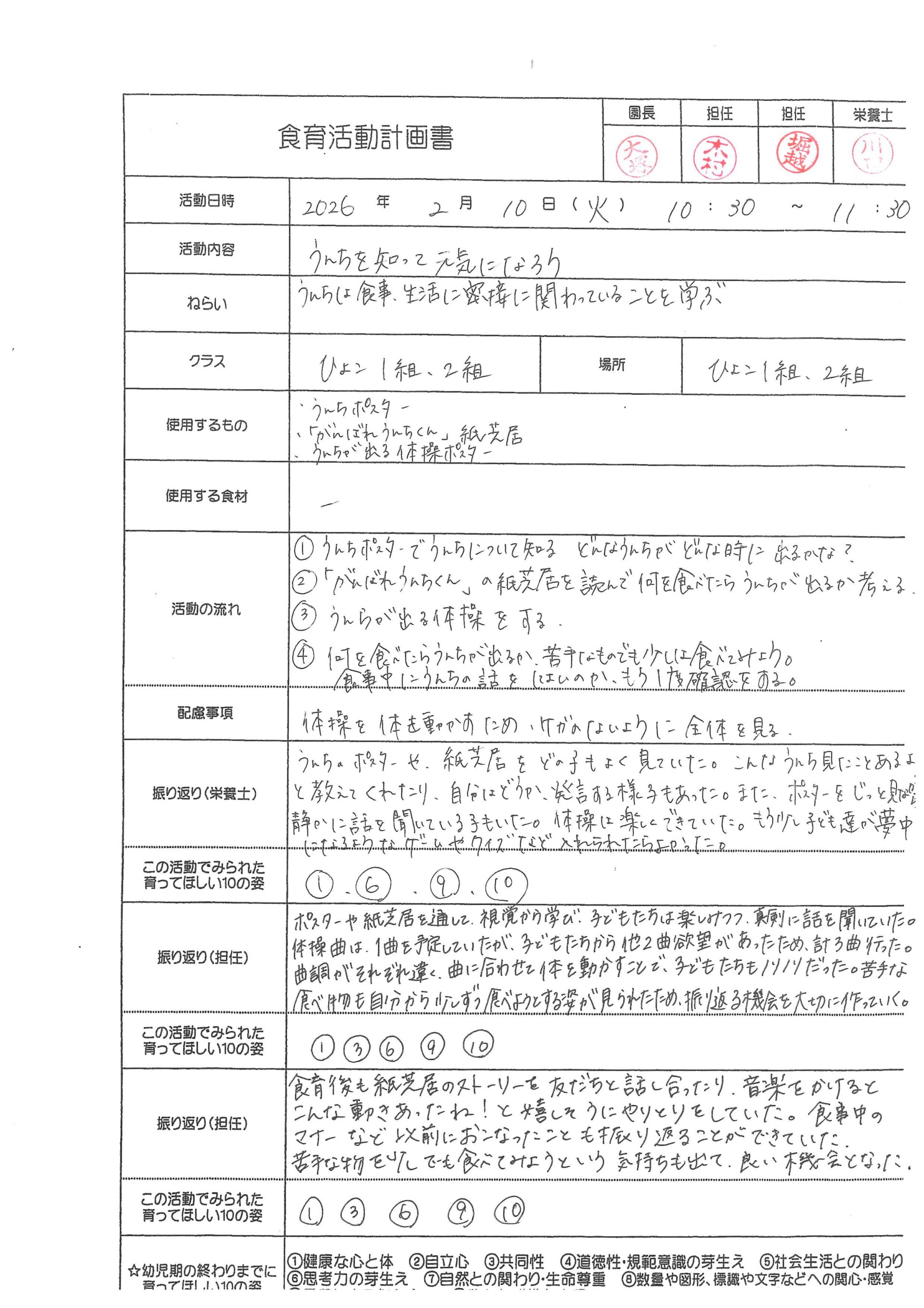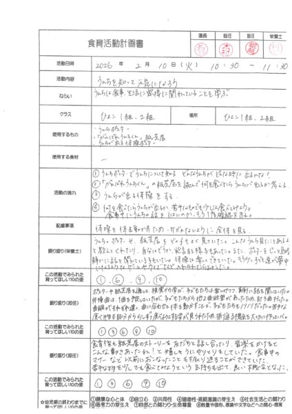 【食育】食育活動計画書 ひよこ1・2組