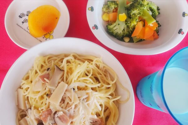 きのことベーコンのバターしょうゆスパゲティ