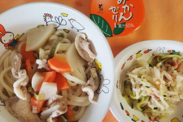 豚汁うどんは冬の野菜やタンパク質がしっかりとれる身体温まるメニューです。